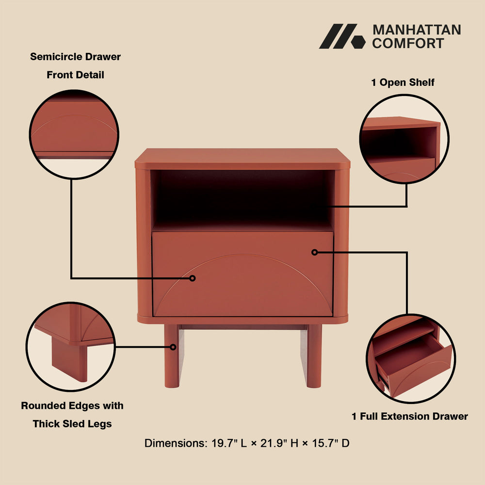 Ella - Nightstand With 1 Drawer - Terracotta 19.7"W x 15.7"D x 21.9"H - 44.0 lb