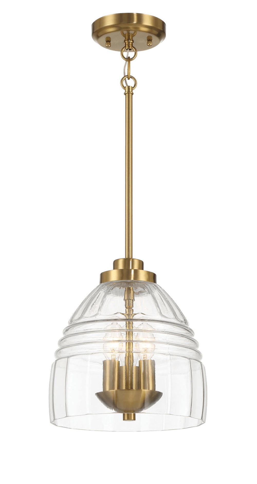 Elegant Design: The Ember Three Candle Lights Chain Pendant combines clear glass and satin brass to create a sophisticated and inviting aesthetic, enhancing the ambiance of any room with its warm glow.