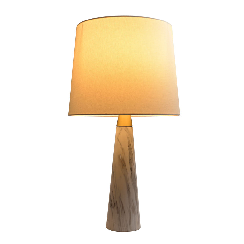 Stylish Design: The Enclave Hydro White Table Lamp features a chic and stylish design with a faux marble base and a soft fabric shade, adding a touch of sophistication to any room.