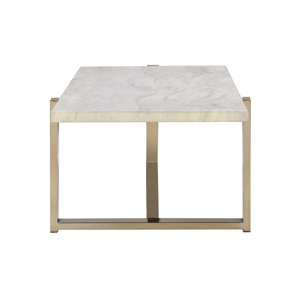 Feit - Faux Marble Top Coffee Table - White Marble 26.0"W x 43.0"D x 18.0"H - 78.0 lb