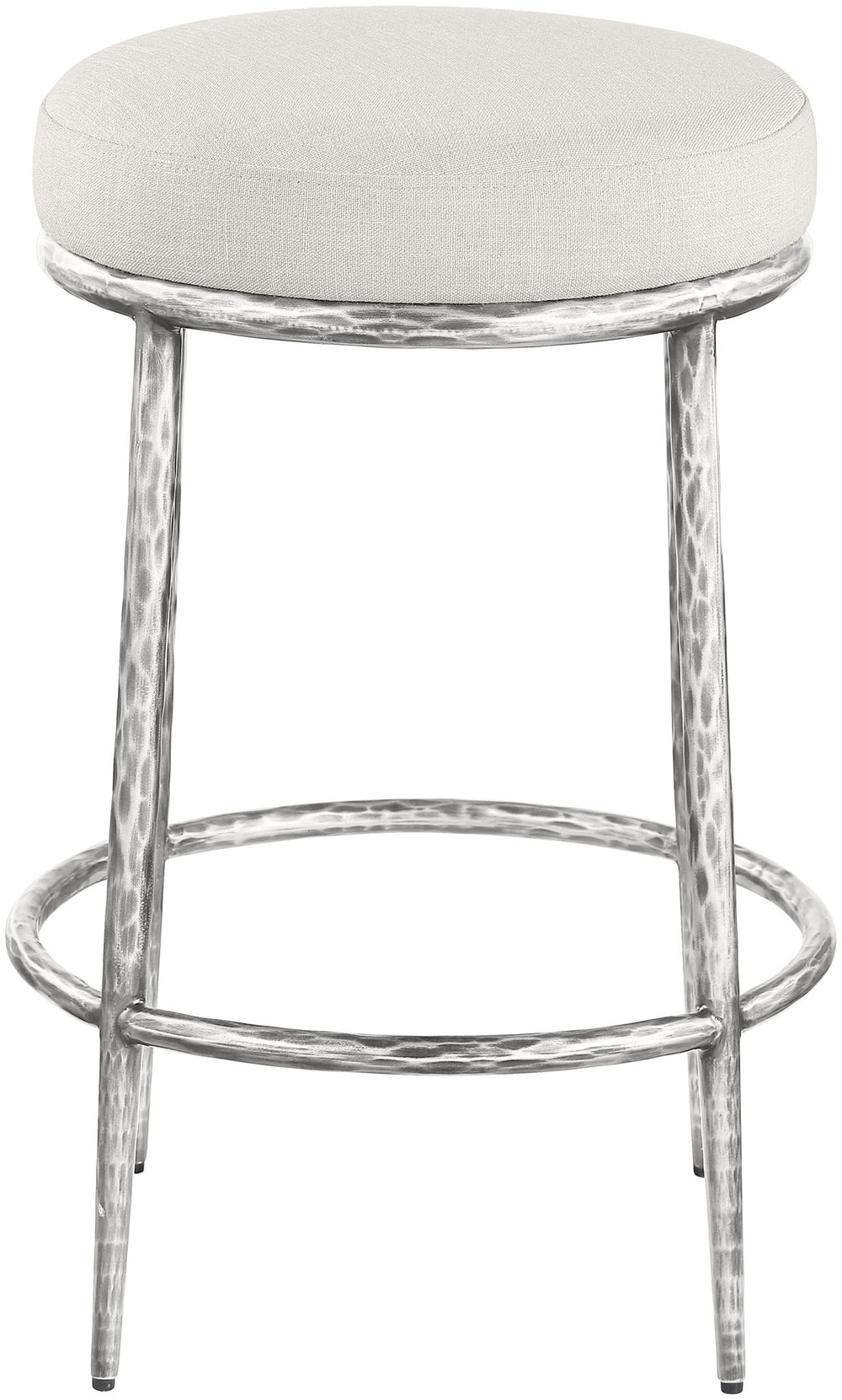 Ferro - Upholstered Backless Counter Stool With Brushed Silver Base Ferro - Linen Textured Performance Fabric Upholstered...