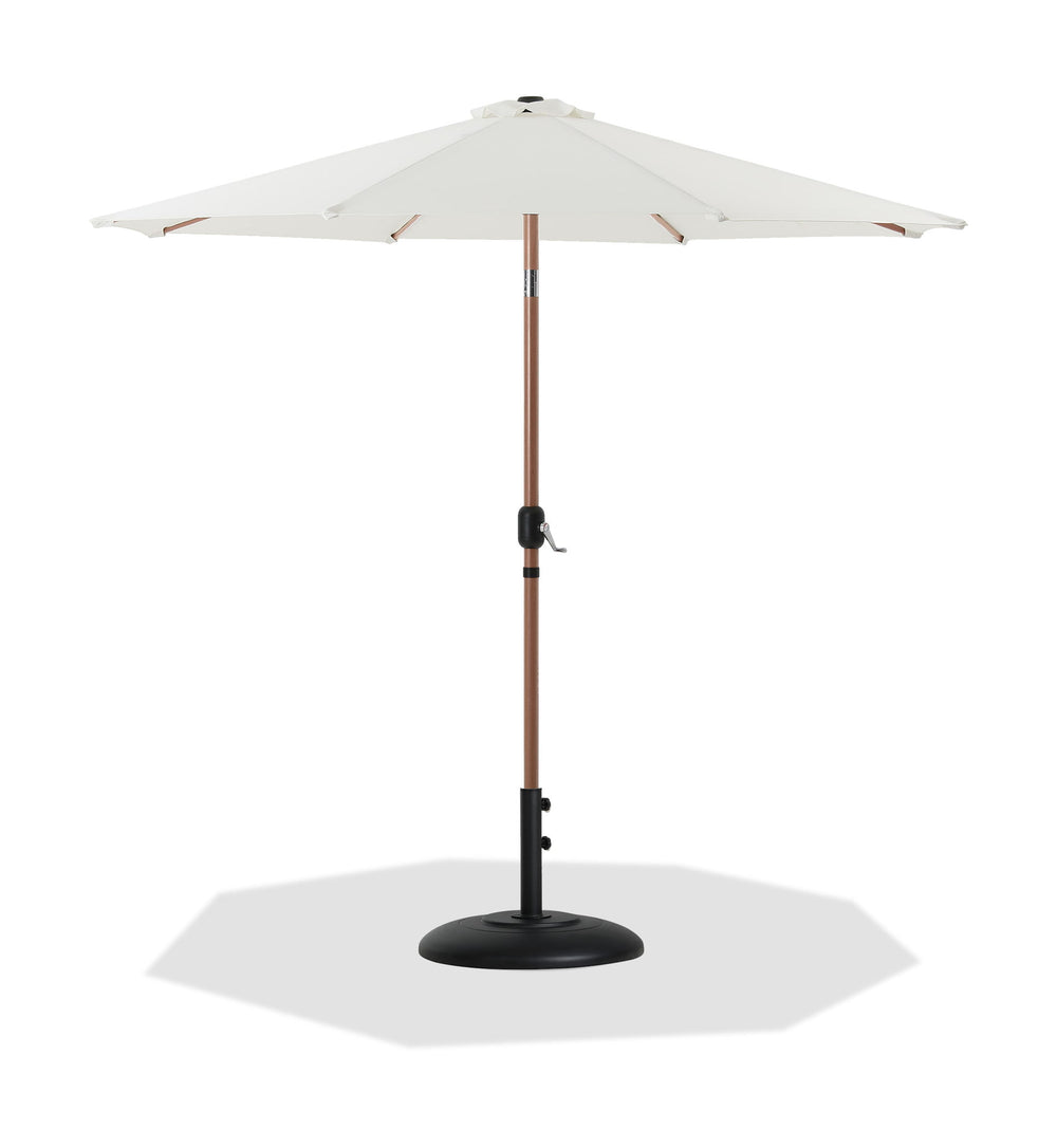 Fiji - Aluminum Patio Umbrella With Round Black And Teak Base - White 108.5"W x 108.5"D x 103.95"H - 134.8 lb