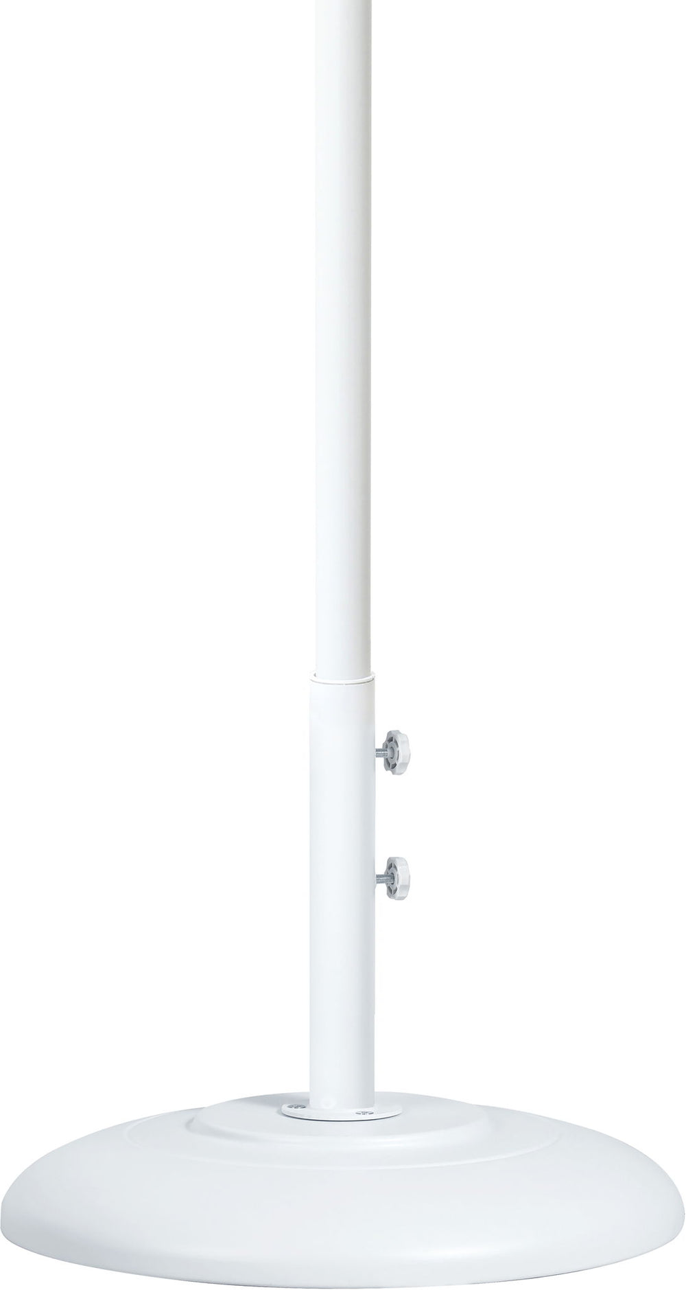 Bask in the shade wherever it's needed when you bring home this Fiji fabric and matte white aluminum patio umbrella with base set. This ingenious umbrella and base can be used as a standalone umbrella on a deck or patio - or add it to your choice of table for a sturdy solution for hiding from the sun's rays. The aluminum pole weathers the elements like a champ, and the umbrella is crafted from water-resistant fabric for a beautiful, lasting look.