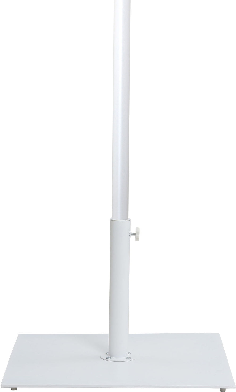 Bask in the shade wherever it's needed when you bring home this Fiji fabric and matte white aluminum patio umbrella with base set. This ingenious umbrella and base can be used as a standalone umbrella on a deck or patio - or add it to your choice of table for a sturdy solution for hiding from the sun's rays. The aluminum pole weathers the elements like a champ, and the umbrella is crafted from water-resistant fabric for a beautiful, lasting look. Casters on the base make for easy portability.