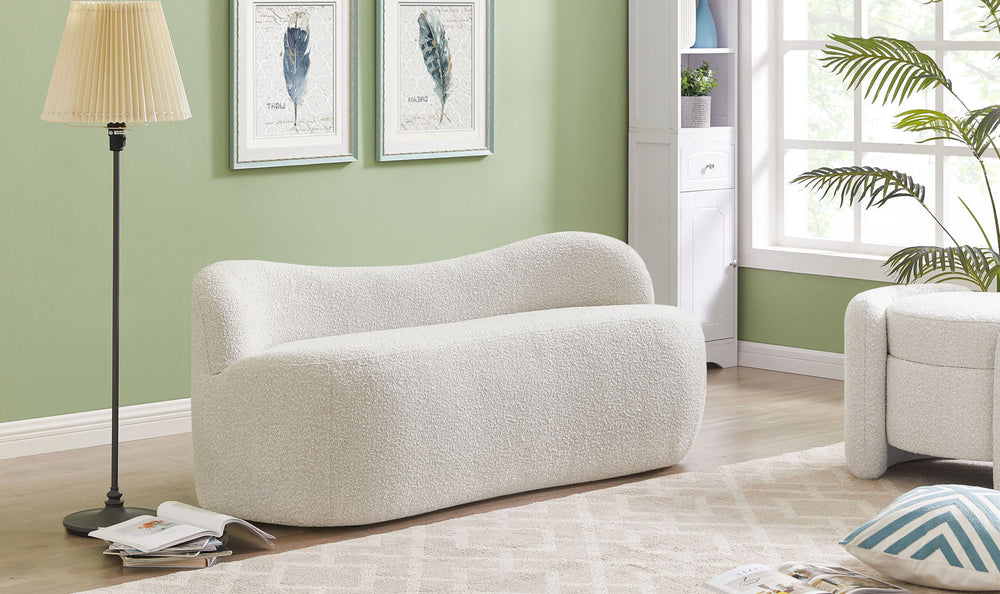 Add a contemporary touch to your home with this Flair bench from Meridian Furniture. Its rich boucle fabric makes a stunning addition to any space. Its curved back provides support for your spine while its overall design creates a stunning accent piece for your modern home. With its ample footprint, this bench provides you with additional seating and is just the right size to fit any living space.