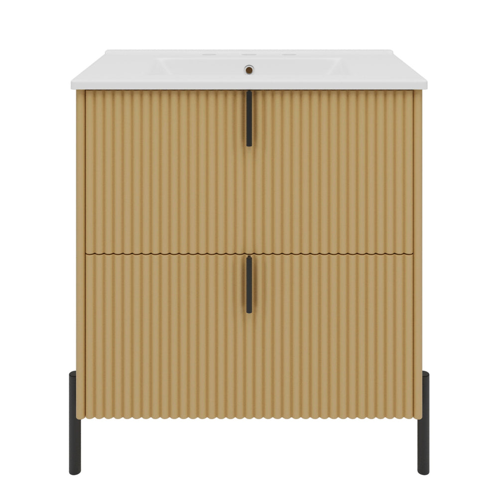 Fluted Bathroom Vanity With Sink, Freestanding Design, Vertical Pulls - Natural 30.0"W x 18.25"D x 34.0"H - 93.7 lb