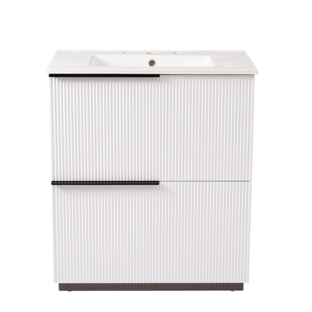 Fluted Bathroom Vanity With Sink, Full Extension Drawers, Soft Close Slides - White 30.0"W x 18.0"D x 34.0"H - 103.18 lb