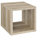 Embrace simplicity in modern to transitional decor with the clean, fresh look of this end table. Constructed from top-selling, engineered wood, it features a basic, functional, and simplistic design with a timeless wood-like finish. The cubic design with geometric, square cubby-like features and an open center creates a structured look. The table includes a lower shelf for easy access storage or display of decor or books, offering a low profile perfect for a relaxed setting. This end table is a great choice in place of a nightstand, complementing virtually any space or decor motif with its open appeal.