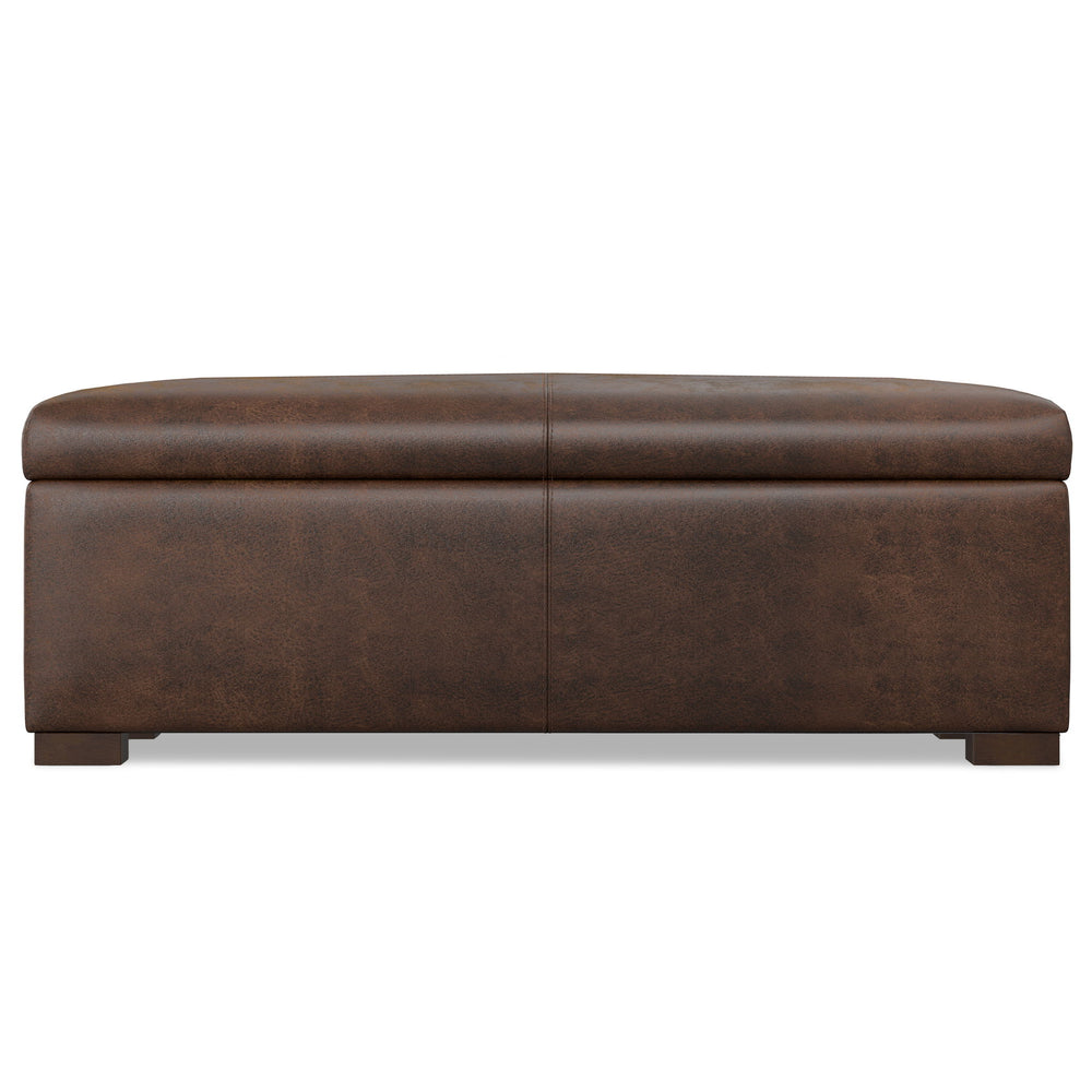 Hand constructed using solid wood and high-density foam. Upholstered with stitching detail. Features a lift-up lid with...