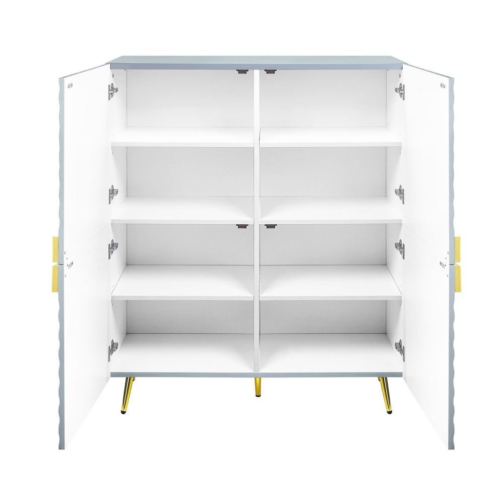 Ample Storage: Equipped with four doors and four adjustable shelves, this cabinet offers generous storage space, ideal for organizing belongings in a sleek and modern fashion.
