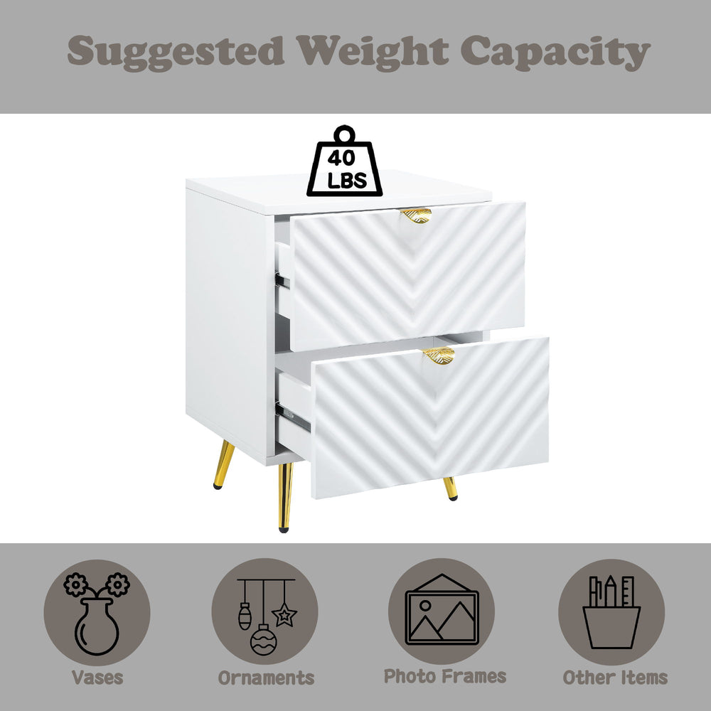 Sturdy Construction: With metal side drawer glides and a weight limit of 66 lbs on the top and 20 lbs per drawer, this nightstand offers both functionality and stability.