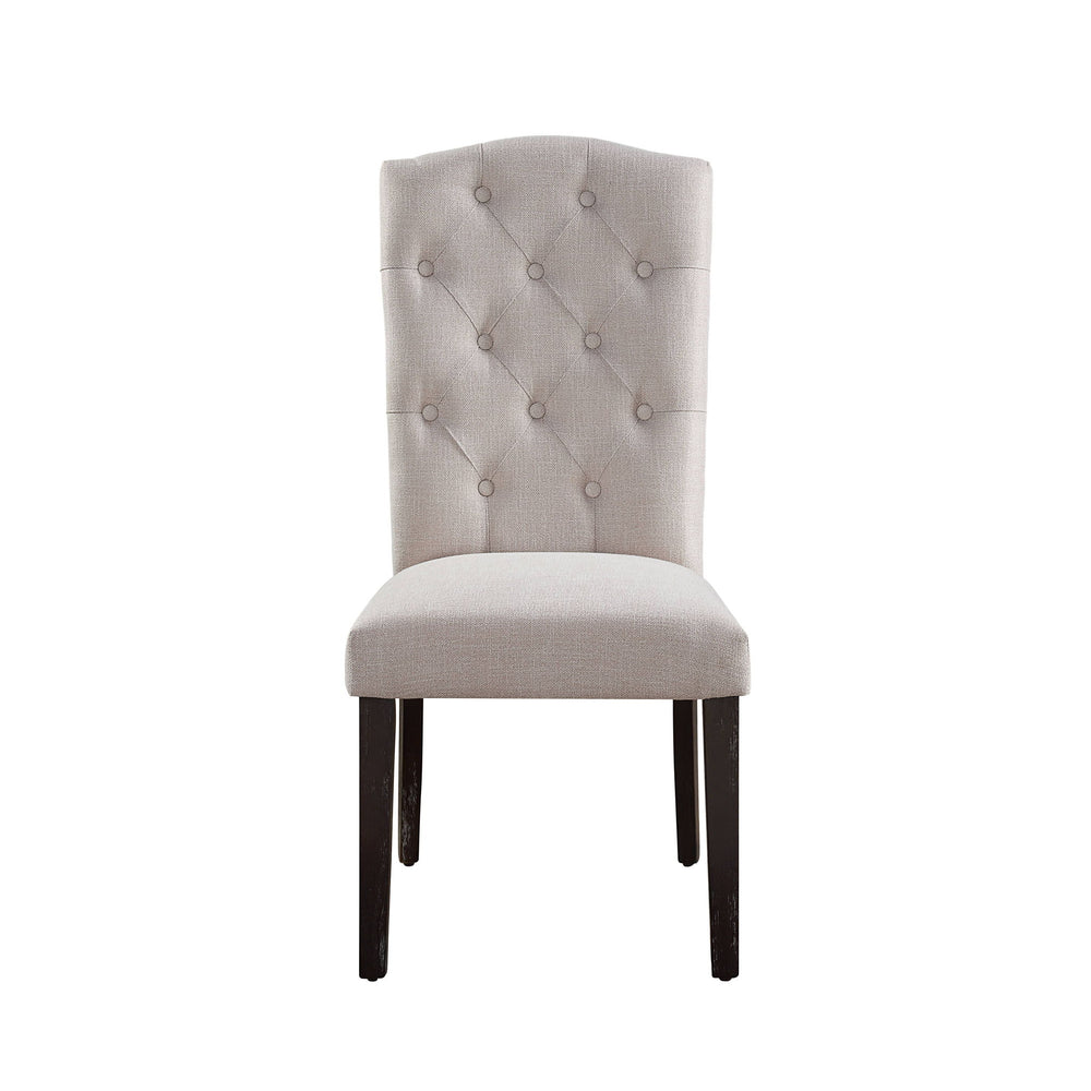Elegant Design: This set of two side chairs features soft beige linen upholstery and warm, weathered espresso wooden tapered legs, bringing a touch of understated sophistication to any room.