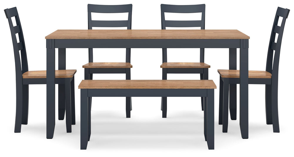Complement your home’s simply relaxed sensibility with this dining table, chairs and bench. A hue offers a chic contrast to the natural wood tone, for a casual look that vibes with a variety of aesthetics. Whether you're sipping your morning coffee, settling in for dinner or working from home, this set is smartly designed for everyday comfort and style.