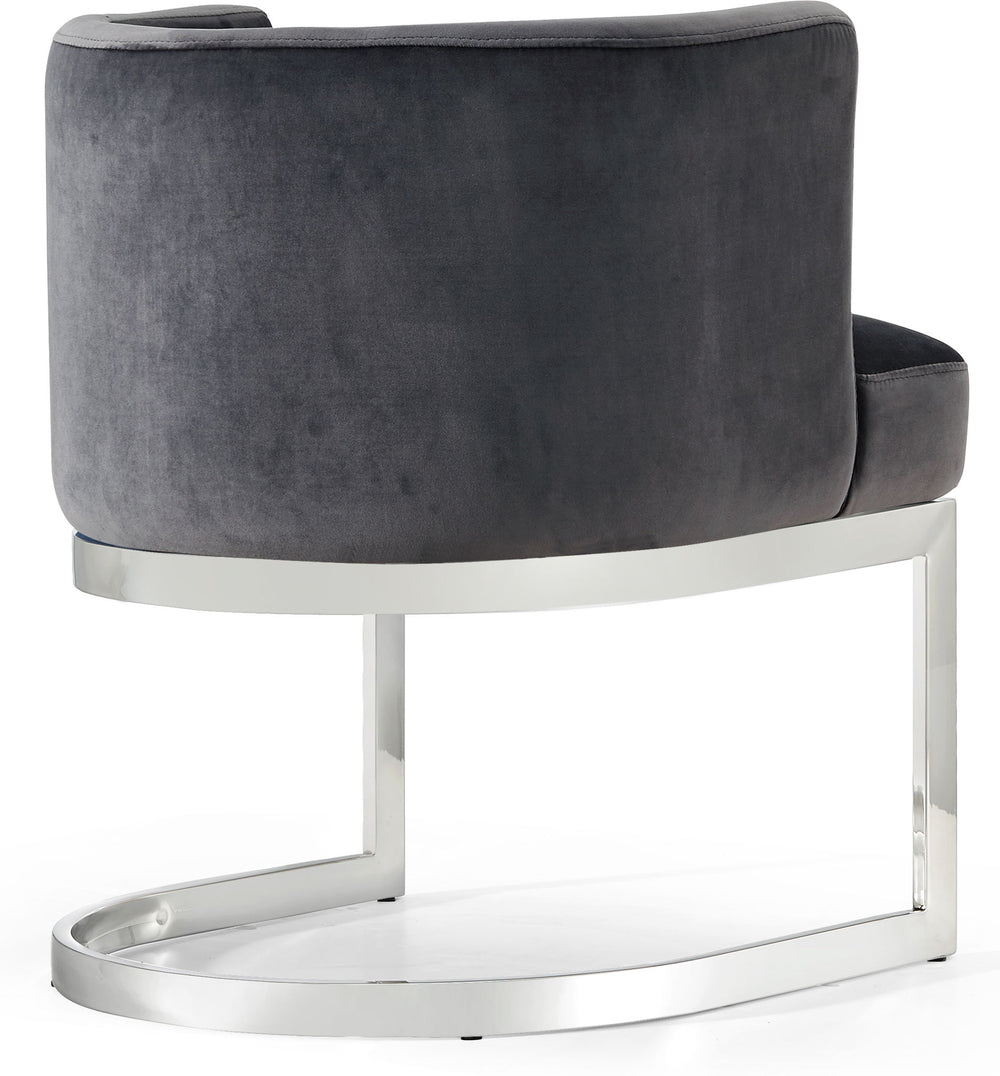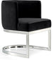 Lend your dining area a touch of retro charm with the Gianna velvet dining chair from Meridian Furniture. The back of the chair has a barrel design that cradles you in comfort while you enjoy a meal with friends, and the chair is thickly padded and upholstered in plush velvet for a luxe feel.