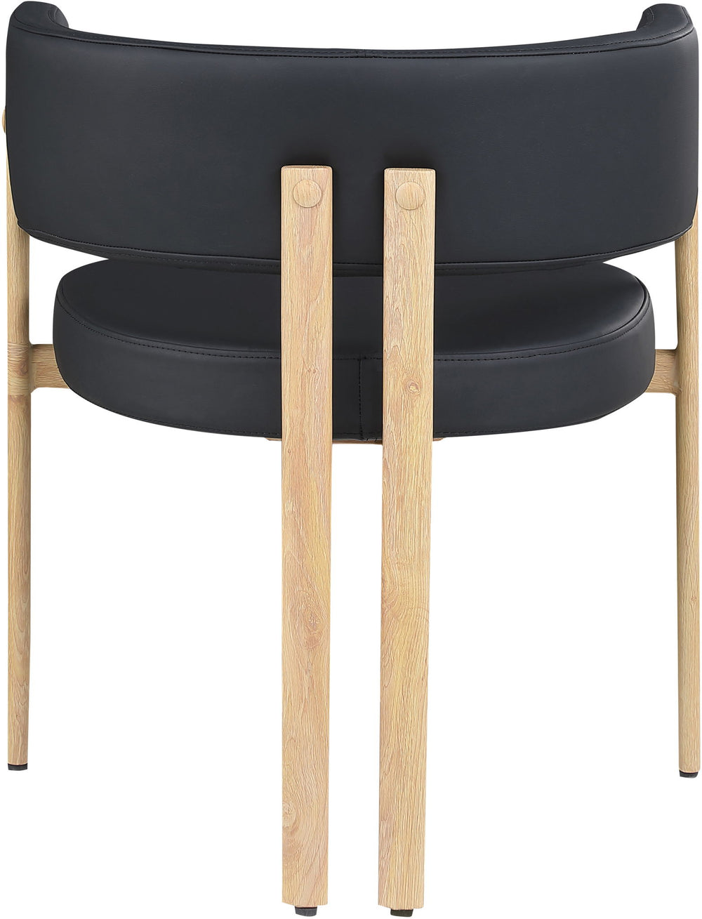 Refresh your dining space with the Gideon vegan vegan leather dining chairs. This set of two casual dining chairs have vegan leather upholstered seats and backs for a comfortable feel against your body while you enjoy meals big and small. Rounded backs offer a stylish slant while supporting your back at mealtime. The chairs' frames are made from metal but have a natural wood look for added aesthetic appeal and remarkable sturdiness.