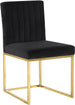 Take dining to a posh new level with this Giselle Dining Chair. A boxy design makes it a nice addition to contemporary spaces, and it's armless design makes it easy to get into and out of with ease. The seat and back are upholstered in rich velvet for a lavish vibe and a pop of sumptuous color to liven up your room, and both are padded well to make sure diners stay comfy while they enjoy their meal.