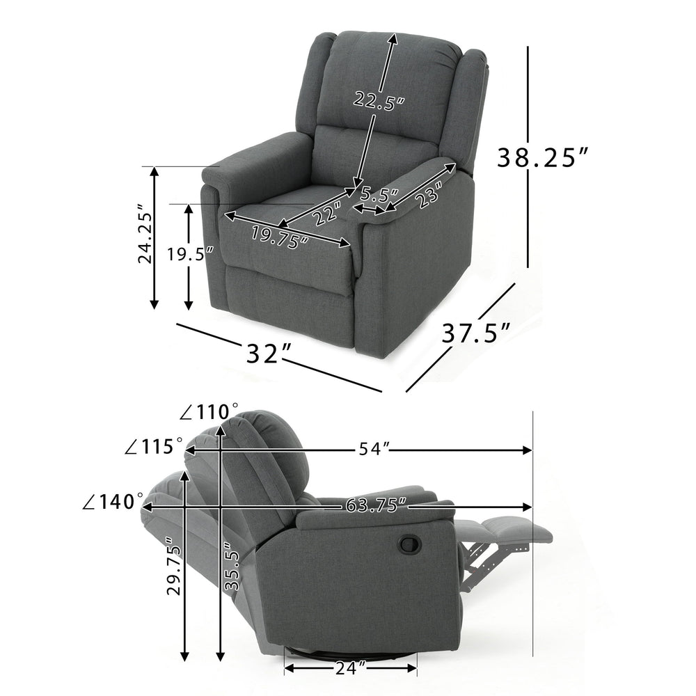 Glider Recliner With Swivel, Manual Reclining Chair - Charcoal 32.0"W x 37.5"D x 38.25"H - 78.48 lb
