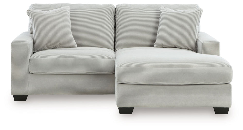 The crisp neutral hue and striking design details of this sofa chaise create a living room that expertly reflects your modern taste. For irresistibly cool textural appeal, the ultra-soft fabric is enhanced by a small-scale corded look. With a clean-lined silhouette complete with track arms, this sofa chaise allows you to take a trend-right approach to everyday living.