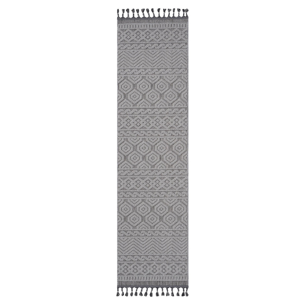 Guros - 2' X 8' Geometric Indoor / Outdoor Area Rug - Gray / White 96.0"W x 26.0"D x 0.28"H - 6.0 lb