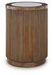 Refresh your living room with the casual elegance of this table. Its round drum silhouette features a welcoming finish and eye-catching reeded details for a touch of texture. Topped with faux stone for chic, modern contrast, this table makes a statement in spaces ranging from casual to contemporary.