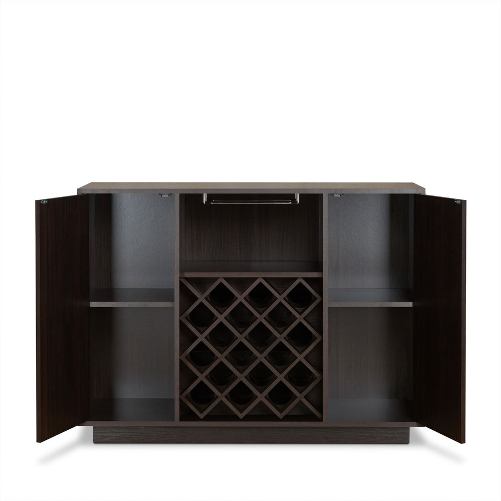 Elegant Design: The Hazen Espresso Finish Wine Cabinet features a sleek rectangular design that complements any modern dining or living space, combining style with functionality for a sophisticated look.