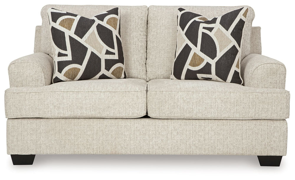 Embrace effortless elegance with this loveseat. Its clean lines and curved details are right at home in contemporary settings. Stressed about styling? The neutral hue easily pairs with your existing color palette. From lounging alone to socializing with guests, it keeps you comfortable in chic style.