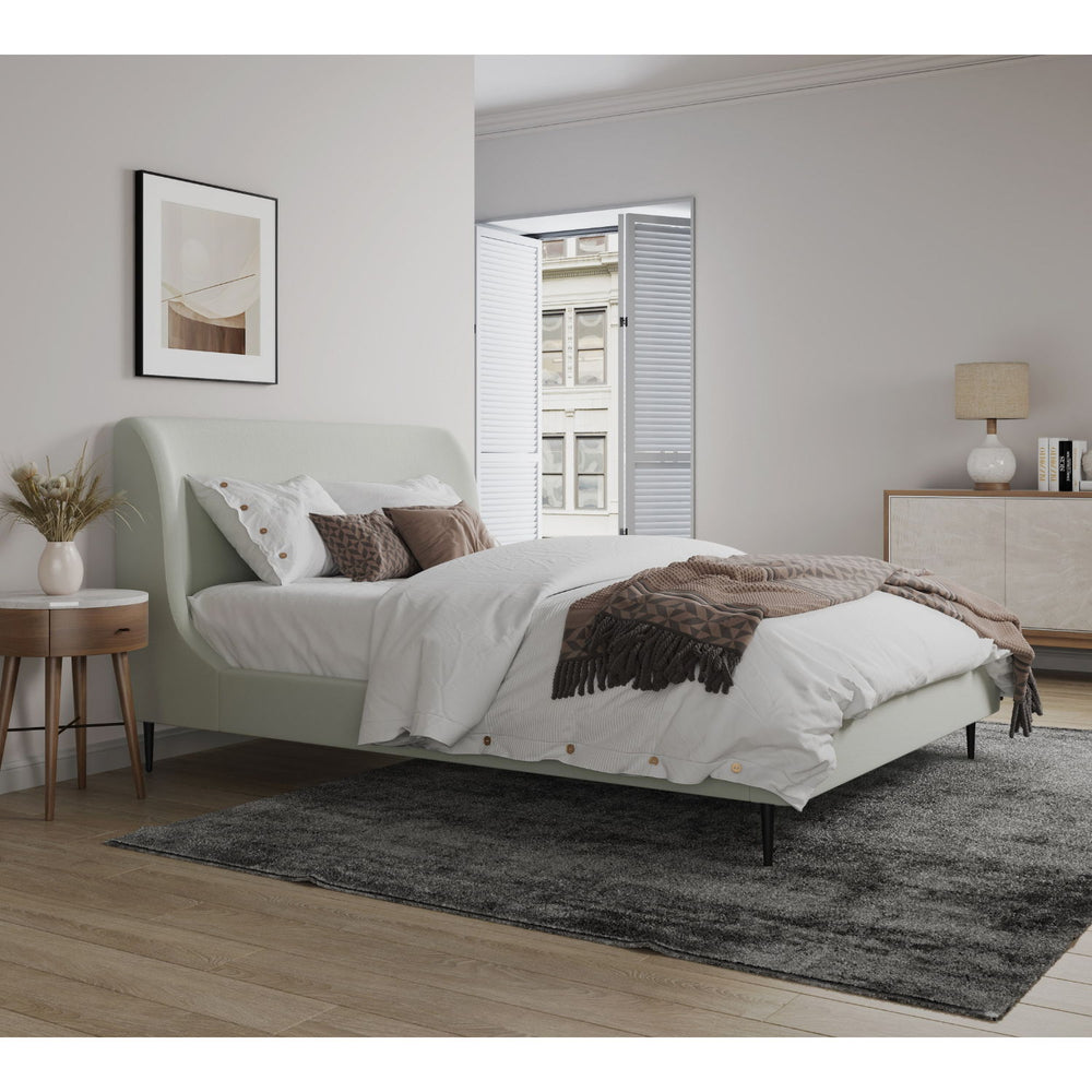 Mid-Century Modern Design: Clean lines and sculpted curves create a timeless bedroom centerpiece