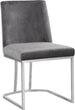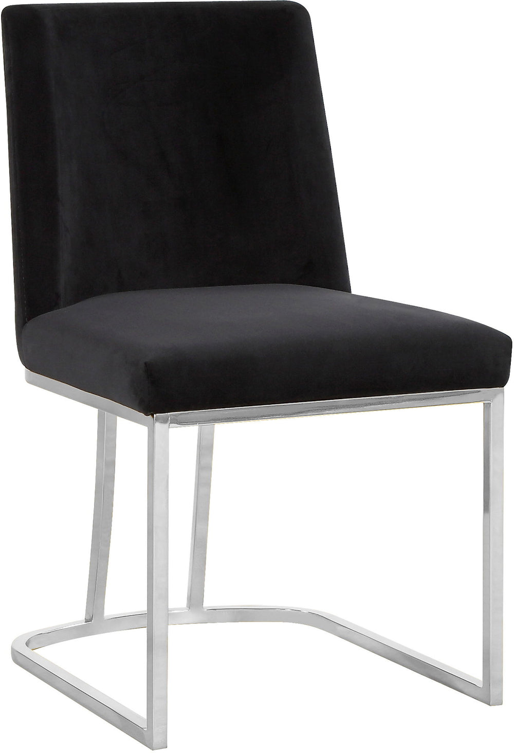 Lend your dining room a Hollywood-inspired vibe with this chic Heidi Dining Chair. This pretty chair features velvety smooth upholstery on its back and seat cushions to comfort and pamper guests while they enjoy their meals. The velvet and metal combination ensures that you make a big statement in your space. The metal frame has a polished finish that adds to the lavish look of this armless chair.
