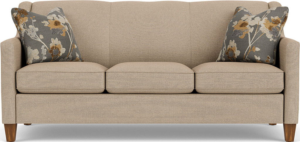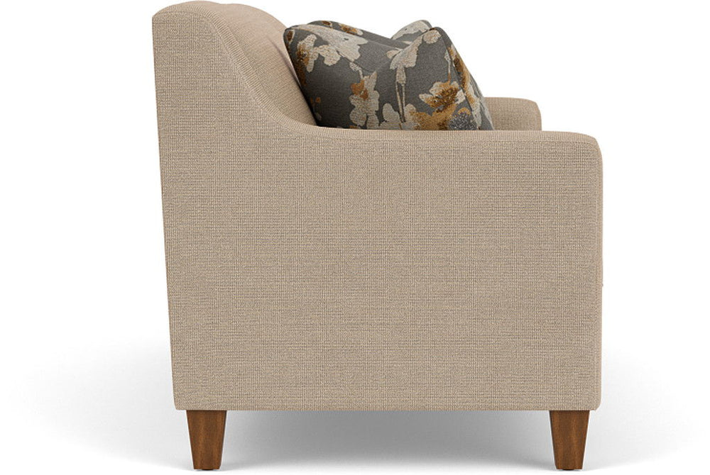 Welt cording highlights Holly’s silhouette from the bottom to the top of the outside arm and across the seat cushions. Tall, tapered wooden legs add visual height to Holly’s structure and complement its modern inspiration. Thin, angled arms curve upward for a fun, stylish effect.