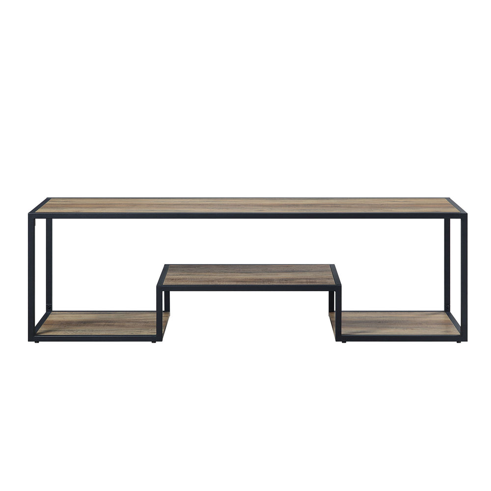 Industrial Charm: This TV stand showcases a rustic oak and black finish that combines industrial appeal with modern functionality, making it a stylish addition to any living room.