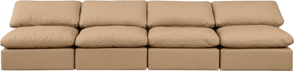 Indulge - Faux Leather 4 Piece Modular Armless Sofa - Tan 140.0"W x 35.0"D x 32.0"H - 229.6 lb
