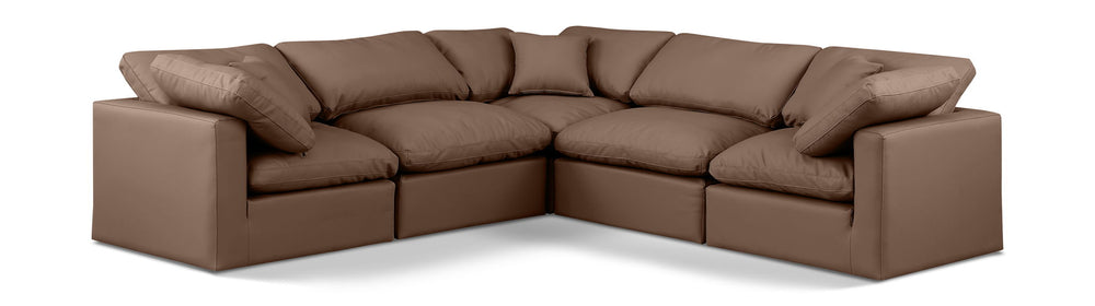 Indulge - Faux Leather 5 Piece Modular Corner Sectional - Brown 105.0"W x 105.0"D x 32.0"H - 318.05 lb