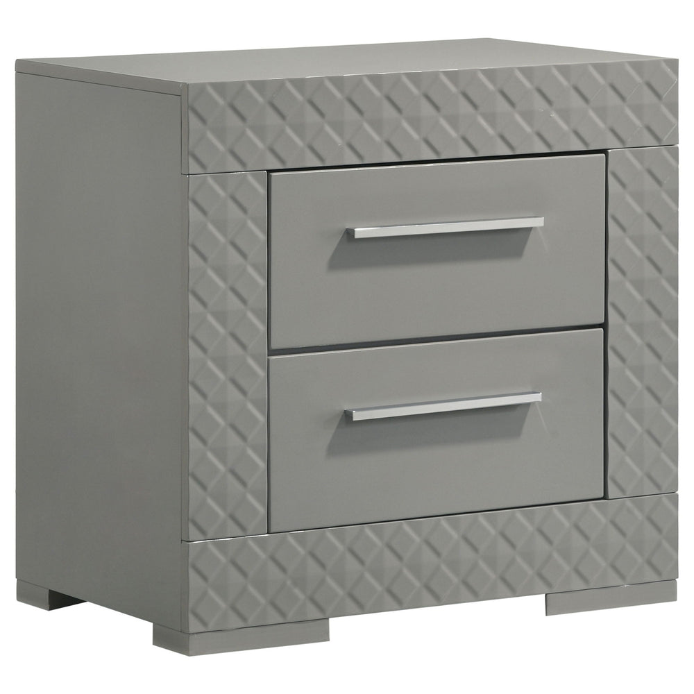 Ives - 2-Drawer Nightstand Bedside Table - Gray High Gloss 25.5"W x 15.5"D x 24.5"H - 50.72 lb