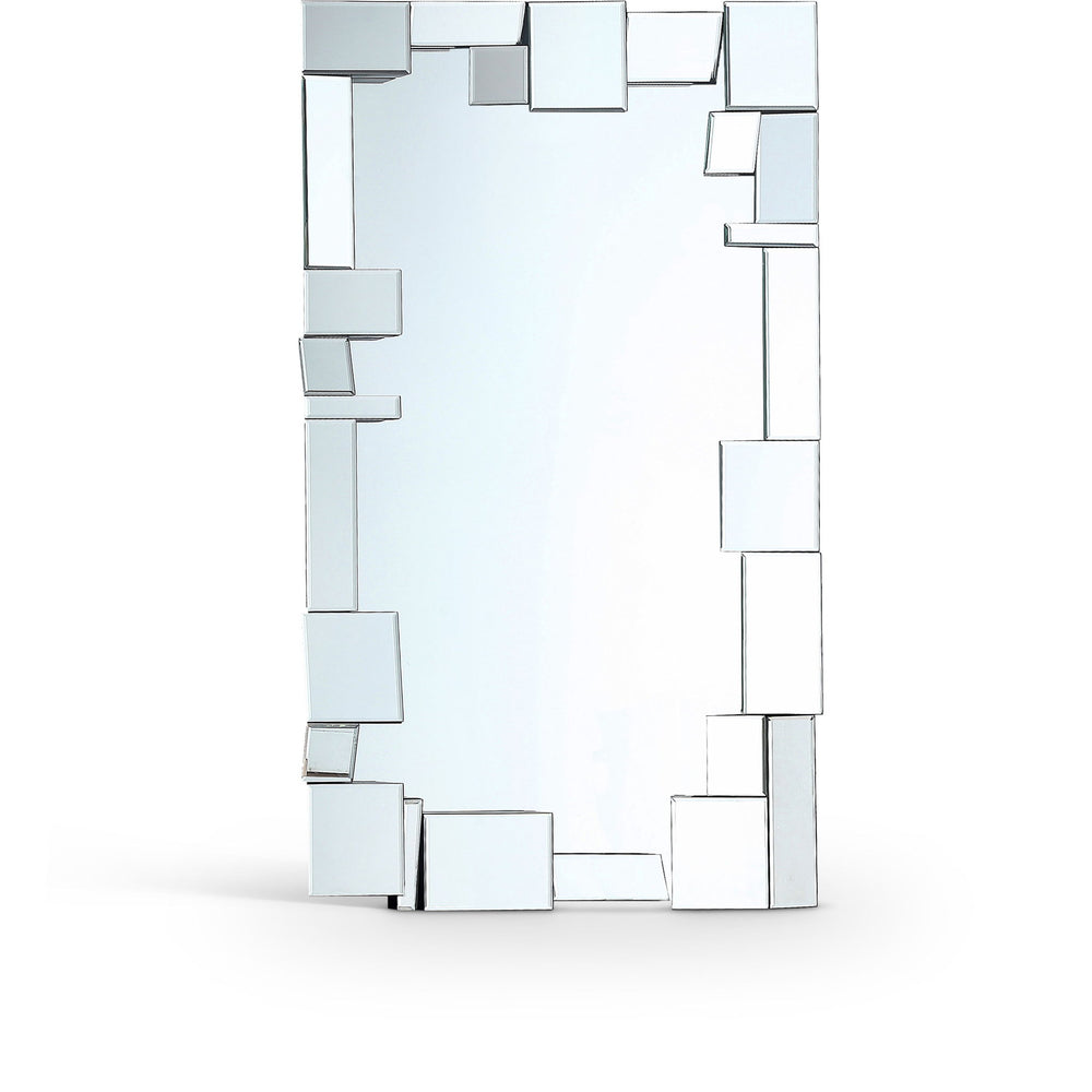 Reflect your exquisite taste with this beautiful Jade mirror. This mirror from Meridian Furniture features a staggered geometric design around its frame that's composed of multiple squares and rectangles, lending it a modern aesthetic that catches the eye. The frame's surface is also mirrored, so the overall effect is nothing short of stunning. Hang it on a focal wall, or combine it with other items in the same collection for a cohesive look.