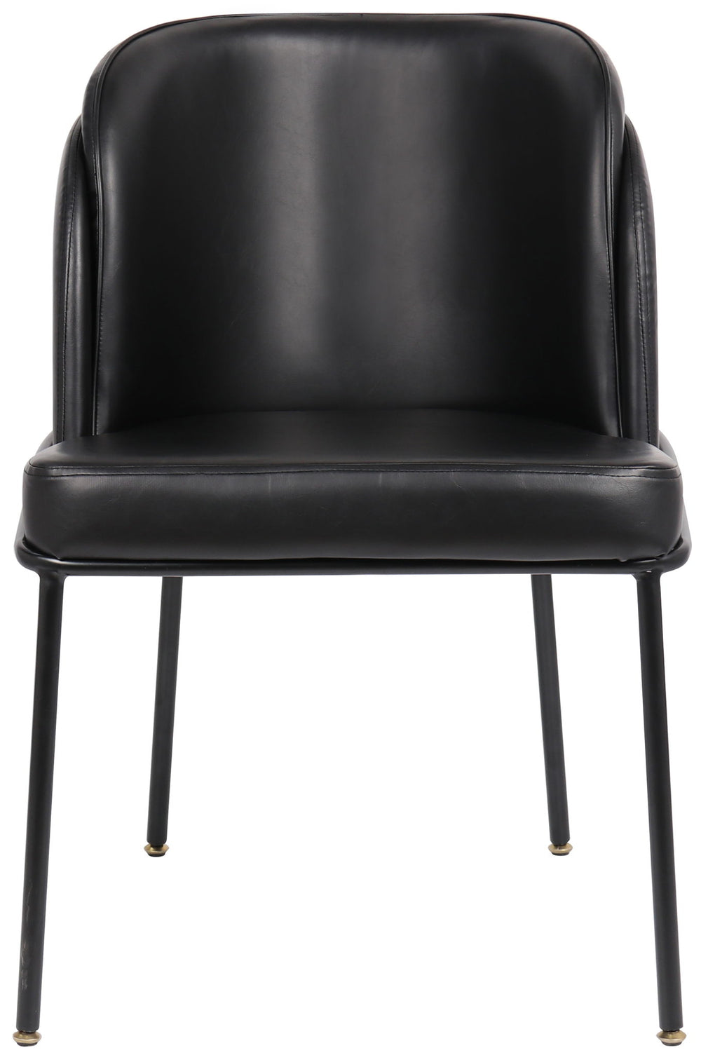 Enjoy the look of fine leather without the cruelty or expense when you bring home this Jagger faux leather dining chair. Upholstered in soft vegan leather, this chair features matte iron legs for sturdy support. Count on the double cushion back to keep you or guests comfortable from appetizers through dessert. Pair this pretty dining chair with the table of your choice for a complete look.