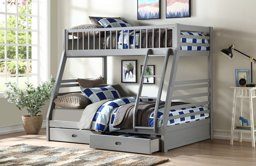 Jason - Twin Full Bunk Bed With Storage - Gray 56.0"W x 79.0"D x 65.0"H - 137.0 lb