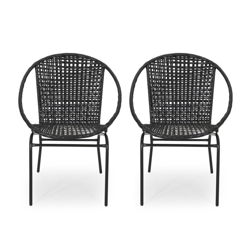 Outdoor Faux Rattan Wicker Chair With Iron Frame (Set of 2) - White / Black 26.0"W x 28.75"D x 32.75"H - 8.82 lb