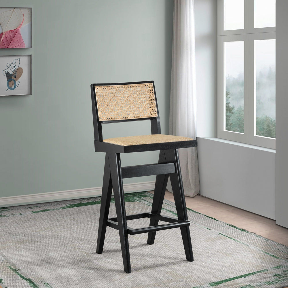 Keira - Bar Stool (Set of 2) - Black / Rattan 18.1"W x 17.5"D x 38.6"H - 26.3 lb