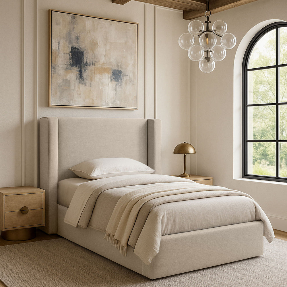 Kendall - Linen Textured Fabric Upholstered Twin Bed - Beige 52.75"W x 84.0"D x 48.0"H - 120.0 lb
