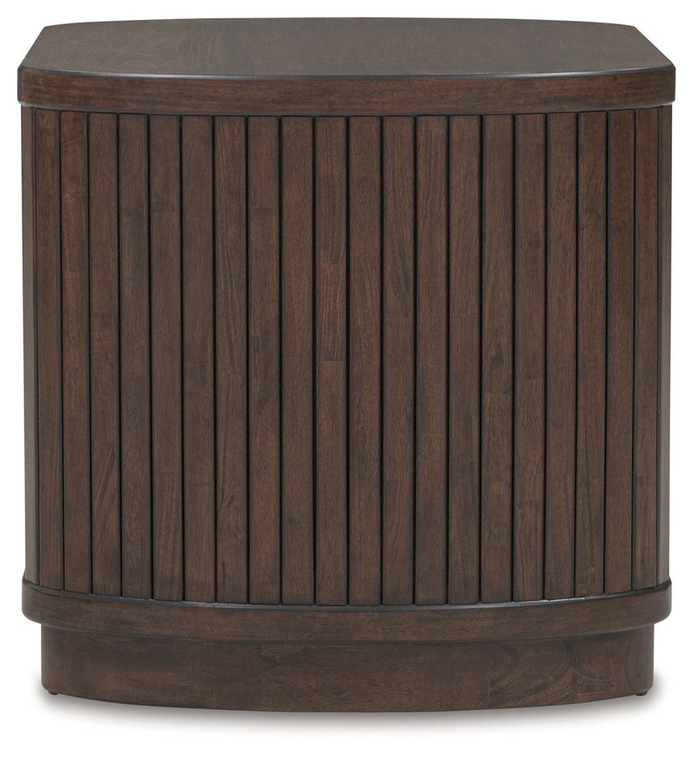 This richly finished end table makes life easy—in a casual contemporary kinda way. When you're relaxing on the couch, this piece makes reaching for the remote or a snack a breeze. A spacious lower shelf is ideal for displaying treasures.