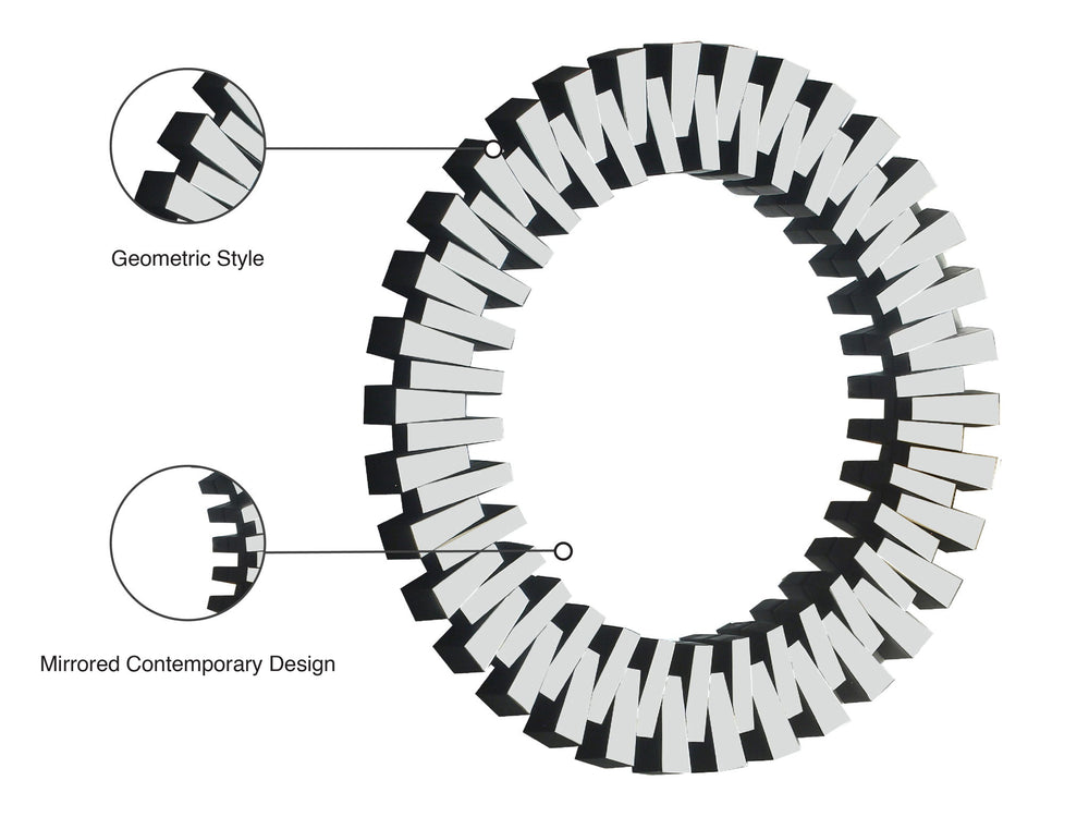 Hang this Kylie mirror wherever you want to add a touch of drama and contemporary flair. This oval-shaped mirror from Meridian Furniture features a mirrored frame for a luxe look from every angle. The frame is made from interlocking and staggered rectangular shapes to give your wall dimension and depth. An oversized design ensures that the mirror gets the attention it deserves no matter where you choose to hang it. Hang it above the collection's Kylie console table to enjoy a cohesive modern look.