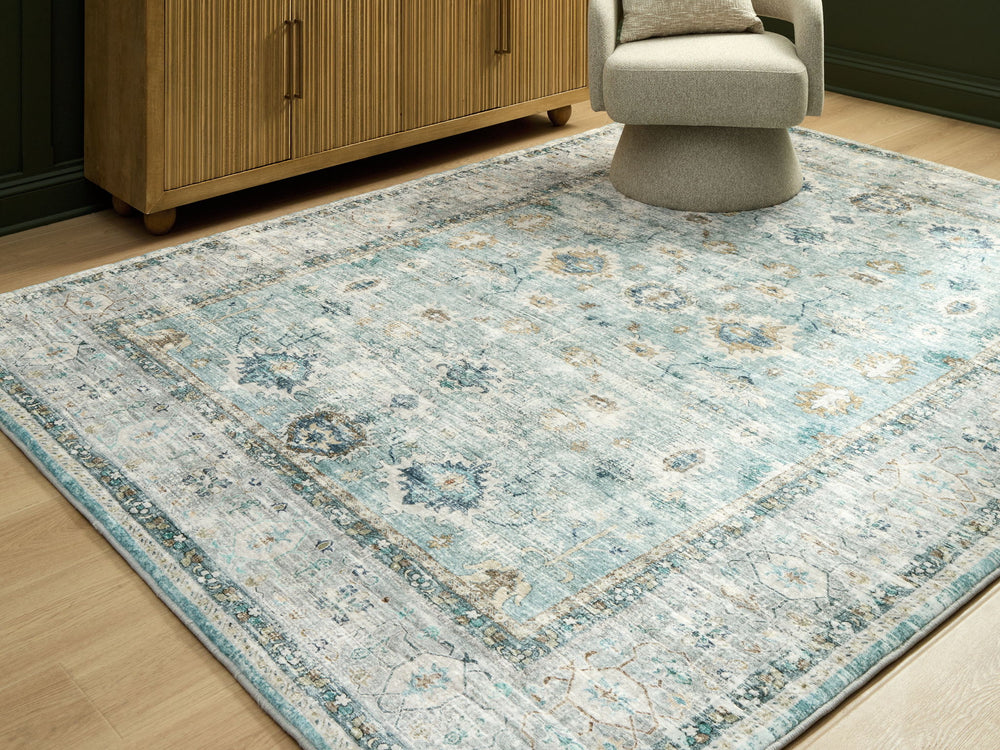 Ladstoney - Large Rug - Teal / Beige / Ochre 90.5"W x 113.63"D x 0.88"H - 26.0 lb