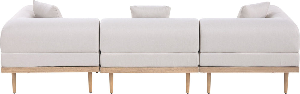 Laguna - 3 Piece Resilient Water Resistant Fabric 106.5" Upholstered Outdoor Patio Modular Sofa - Cream 106.5"W x 35.5"D x 28.5"H - 195.0 lb