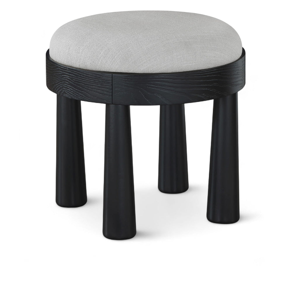 Larea - Linen Textured Fabric Ottoman - Black Base