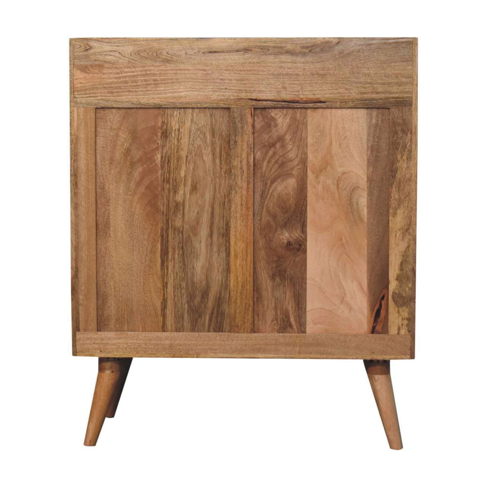 Larissa T-Bar Raised Cabinet - This beautiful T-bar Cabinet has been constructed from 100% solid mango wood and has a lovely natural oak-ish finish. It features a clean rattan design on the doors, t-bar handles, as well as 4 Nordic style legs for stability and a modern touch. Make full use of this piece in your living room or hallway and let it take care of storing all your belongings.