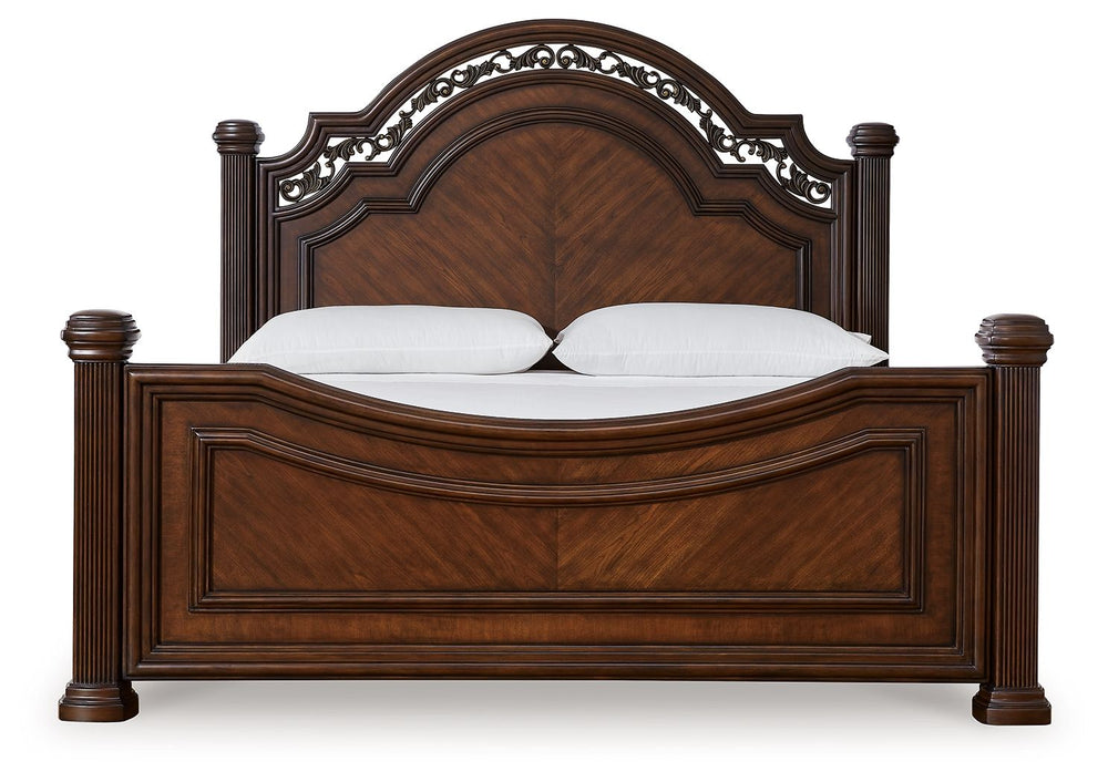 Take inspiration from the traditional luxury of this poster bed. Classic with a rich finish, its stately presence graces your room with an air of opulence. Your taste for exquisite details is satisfied with the headboard’s ornate accent filigree. With an elegantly crafted footboard completing the look, your restful retreat has never been so refined.