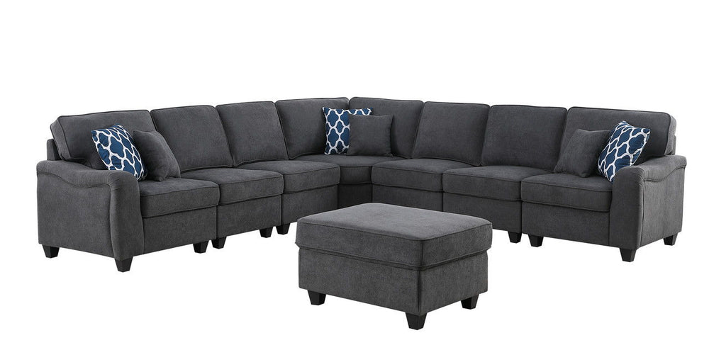 Leo - Woven 7 Piece Modular L-Shape Sectional Sofa And Ottoman - Dark Gray 99.0"W x 125.0"D x 35.0"H - 301.0 lb