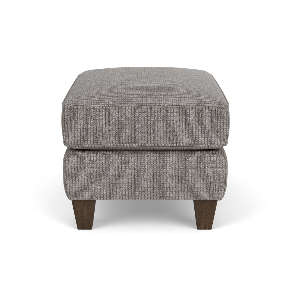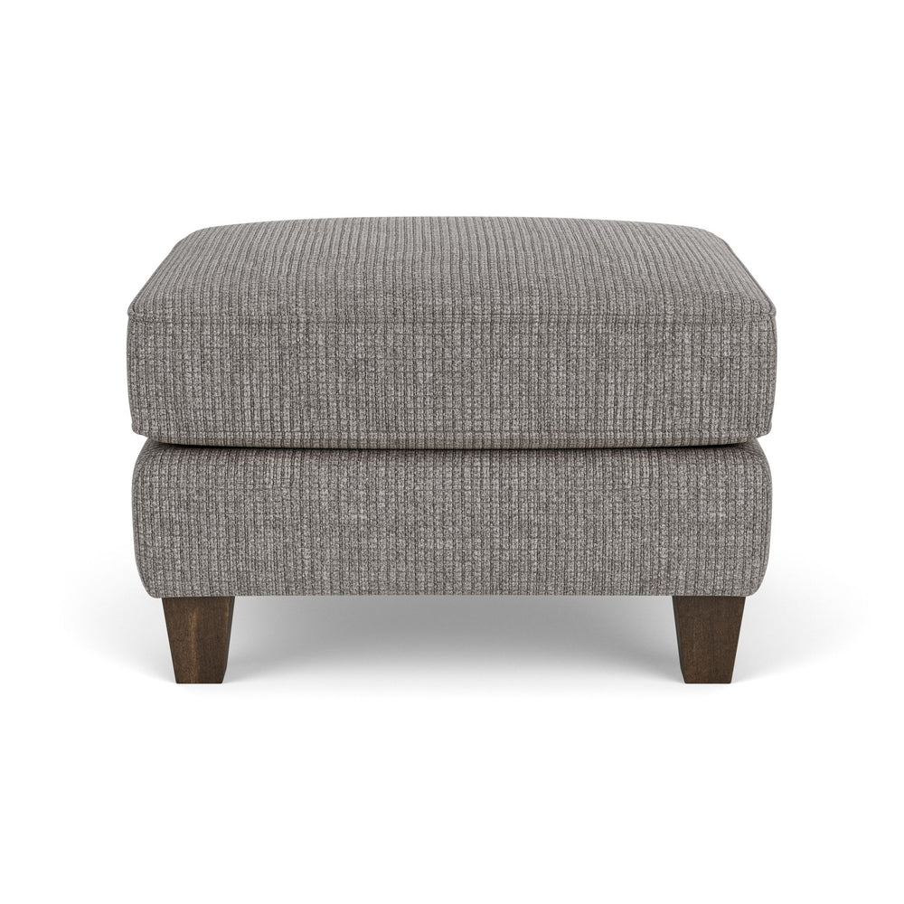 Libby is a transitional stationary style with clean lines and graceful curves. Its off-the-floor frame is complimented by square tapered legs. This ottoman features a detailed welt trim. The posh and plush style of Libby fits in with many home décor spaces.