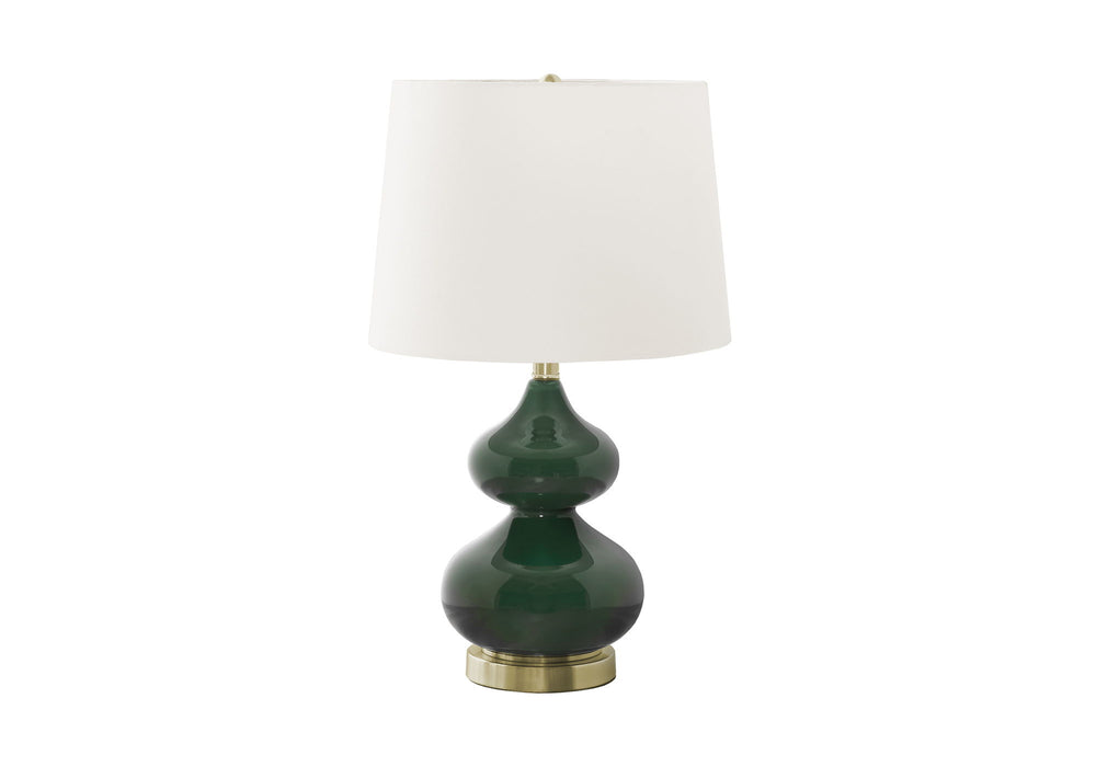 Stylish Design: Trendy 24"H double-gourd table lamp with a stunning body, metal base, and chic fabric shade....