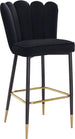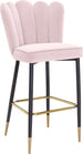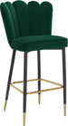 Fall fast and hard for the beautiful look of this Lily Bar Stool from Meridian Furniture. This lovely stool features a striking velvet fan-style back with deep tufting that helps the padding inside stay full and aloft for added comfort. The cushioned seat and back are upholstered to the hilt for maximum luxury and beauty. metal legs with a matte finish and tips add contemporary appeal to this handsome stool whether used at the bar or kitchen counter.